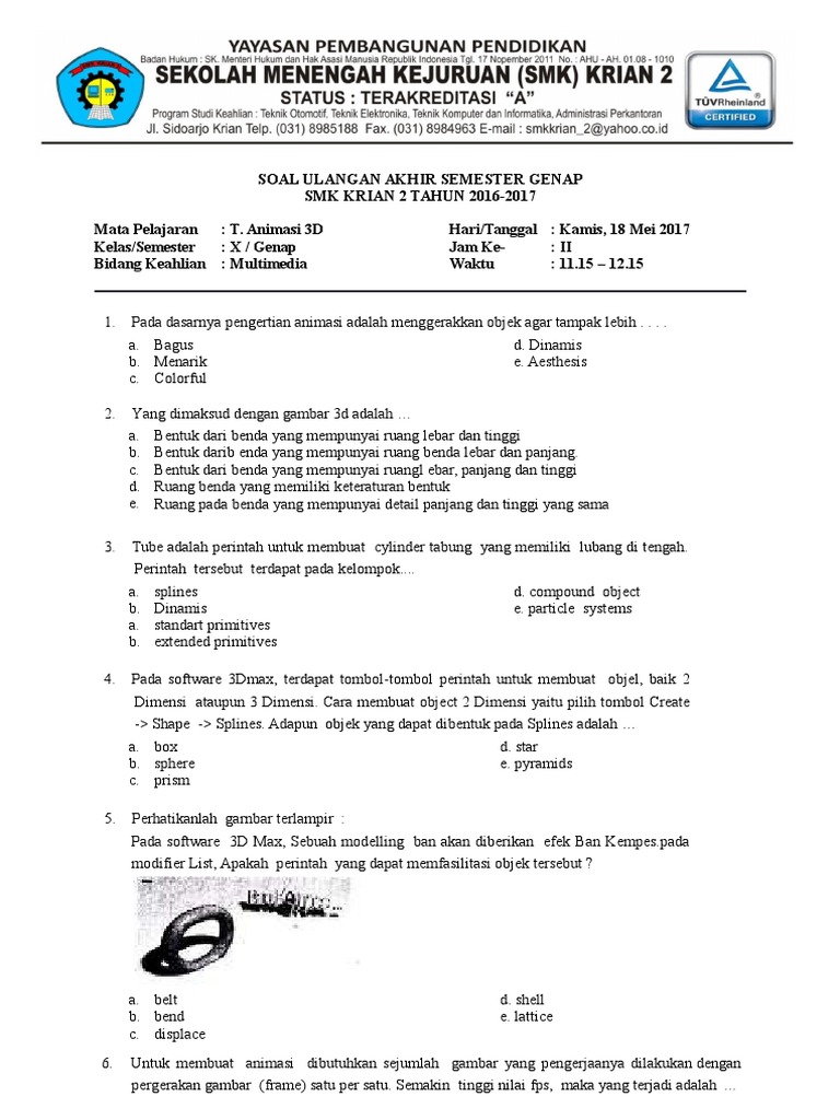 Soal Uas Ganjil Teknik Animasi 3d 2016 2017 Kelas Xi Print Pdf Txt. Materi Pemrograman Web dan Perangkat Bergerak Kelas 11 PDFPPT Materi lengkap untuk rekan-rekan guru atau para siswa yang mencari materi tentang Pemrograman Web dan Perangkat bergerak secara lengkap bisa kalian dapatkan di situs ini. Animasi 2D dan 3D SemGanjil Kelas XI SMK.