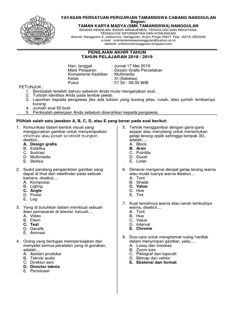 Soal Pat Animasi 2d Dan 3d Kelas Xi 2019 Kunci
